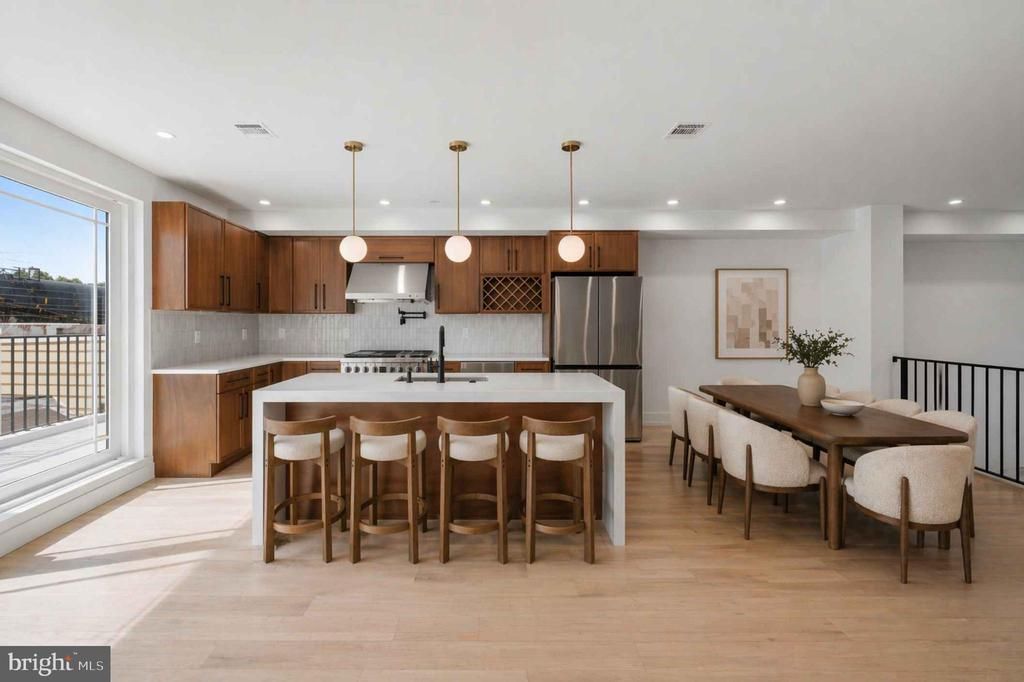 Showings start with the Open House Friday March 24th 4:30 pm-6pm, Sat 11-1pm & Sunday 11-1pm, join us! Set on a rare 20-foot-wide footprint with an expansive 20x100 lot, this newly completed residence offers a level of scale and presence seldom found in city living. Located along a picturesque, tree-lined street in Port Richmond, just moments from the energy of Fishtown and iconic Tacconelli's Pizzeria, this home is a seamless blend of architectural volume, thoughtful design, and modern luxury. Spanning nearly 4,000 square feet, the property features 5 bedrooms, 4 full baths, and 1 half bath, designed for both elevated entertaining and effortless daily living. The main level is defined by soaring 14-foot ceilings, an elegant electric fireplace, and an open flow into a show-stopping chef’s kitchen. Here, custom walnut cabinetry, a sculptural waterfall quartz island, and hand-laid zellige tile backsplash meet a premium appliance suite including a 6-burner Dacor range, Monogram vent hood with integrated heat lamp, double door Samsung refrigerators, and a Thermador beverage fridge. A generous dining area extends to a private terrace, perfectly positioned for refined al fresco dining. A large pantry offers flexibility for customization. Upstairs, the primary suite delivers a true retreat, complete with a spa-inspired bath featuring a soaking tub, oversized walk-in shower, double vanity, and designer finishes, alongside a massive walk-in closet ready to be tailored to your needs. Enhancing the experience on this level is a custom walnut wet bar, thoughtfully integrated for added convenience and elevated everyday living. Secondary bedrooms and baths echo the same elevated design, with high-end vanities, LED-integrated mirrors, and artisanal tilework throughout. Outdoor living is equally compelling, offering three distinct outdoor spaces, including a private terrace, a sprawling roof deck, and additional entertaining areas designed for both hosting and relaxation. A standout feature is 5-car gated parking, including a garage, an exceptional offering that provides flexibility for collectors, enthusiasts, or those seeking a true private urban compound. Finished with a timeless brick façade and equipped with dual-zone HVAC, this home also benefits from a full 10-year tax abatement, original and not prorated, along with a 1-year builder warranty. This is city living at scale, where width, depth, and design come together in a way that is rarely available.